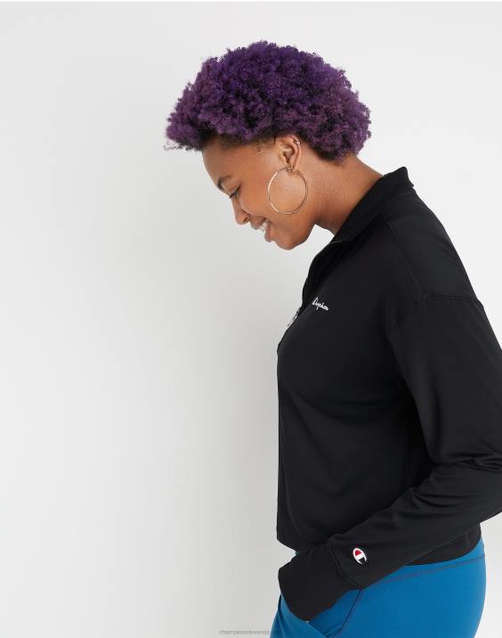 Champion ženske mehak logotip s četrtino zadrge 2B842036 Črna